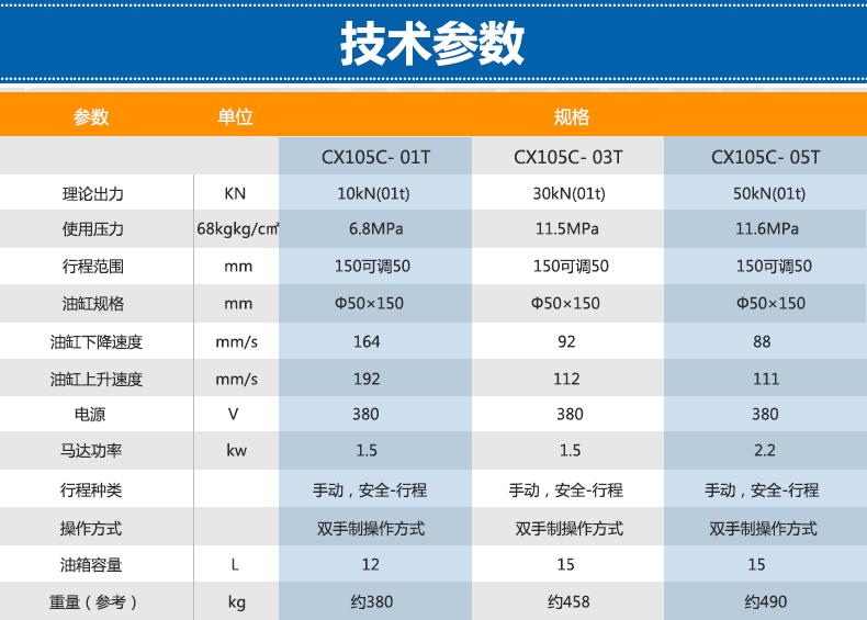 科鑫盟CX105系列C型油压机采用整理焊接的坚固开式结构,C型和弓形,拥有最方便的操作空间。该系列压床是一款适用性极强的单轴装配设备,集气压,油压优点为一身,是广大厂商提高质量的优选产品。